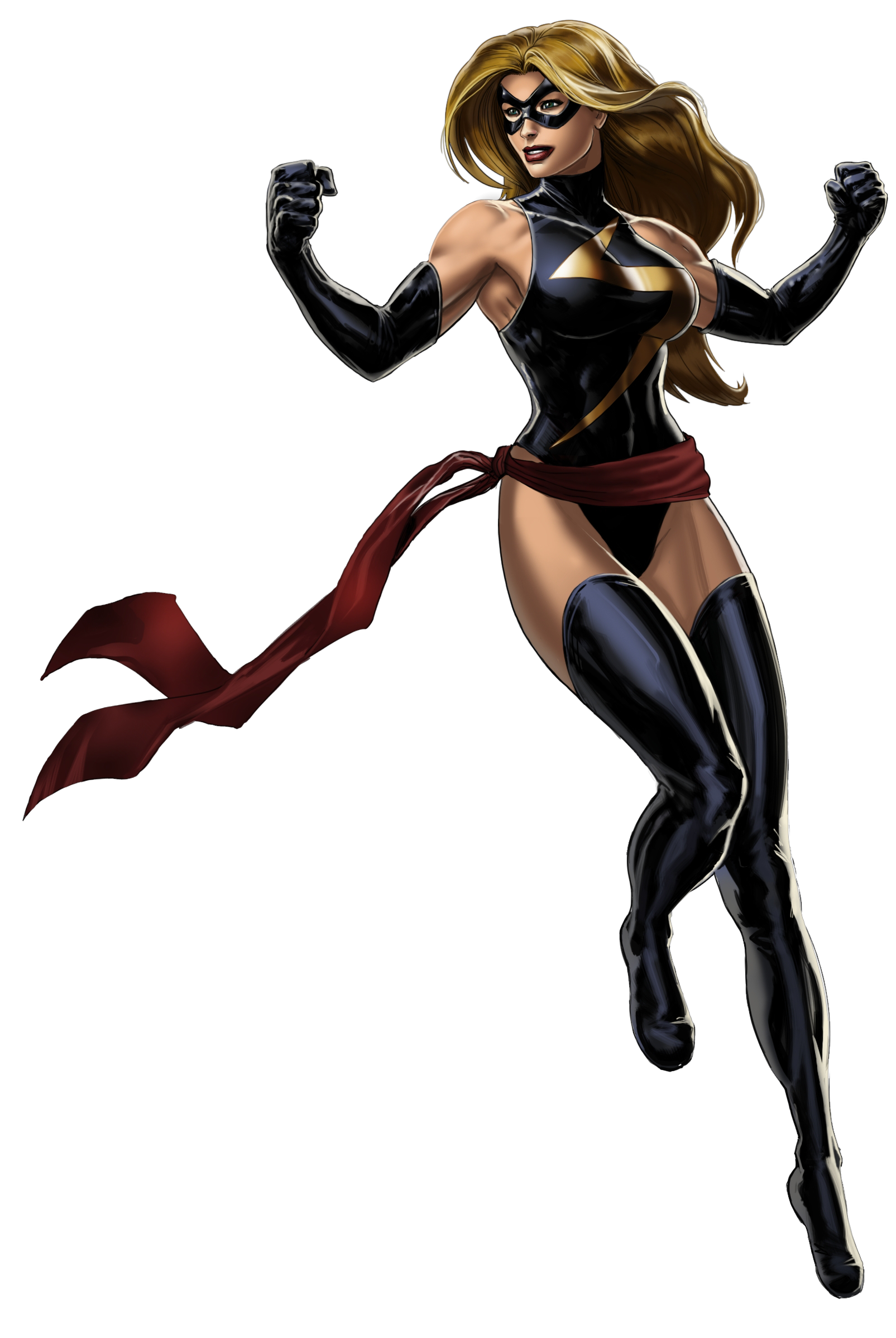 For the record, Miss Marvel, which was Carol Danvers' first of many identities, was a six-foot blonde who got her powers through less than conventional means... even for the Marvel universe. On the right, you get to see Miss Marvel in her original, and best, outfit. She's muscular and feminine at the same time. So, not bad.