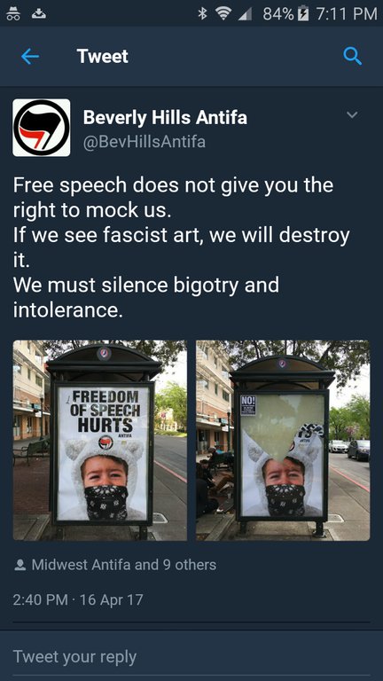 It should be a source of irony that people who call themselves "anti-fascists" are the ones who are calling for the suppression of free speech. But they lack irony, and wouldn't know irony if it hit them over the head. It is much like how "anti-Communists" called themselves the "National Social Workers Party" -- which is basically the exact same label as any other Communist group, only the abbreviation in German is "Nazi."